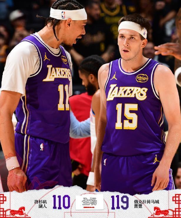 本场比赛,湖人方面东契奇继续缺阵,雷霆核心亚历山大同样高挂免战牌,但杰伦·威廉姆斯迎来复出。经过四节激战,最终雷霆凭借末节的稳定表现,以119比110客场击败湖人,终结对手三连胜。