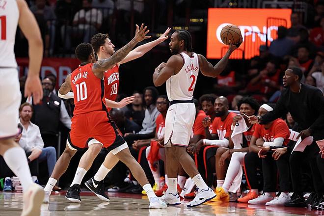 本场比赛中,快船的头号球星科怀-伦纳德(Kawhi Leonard)的表现显然是无法达到大家预期的。伦纳德全场出场31分29秒,投篮19中7,三分线外7中2,罚球9中8,得到了24分8篮板3助攻1抢断的数据,还有1次失误,正负值更是低到了全场最低的-16。伦纳德在进攻端的效率并不理想,他的得分能力并没有发挥出来,他在外线投篮方面的手感也非常一般。作为球队的核心人物和头号球星,伦纳德还是得到了不少的球权和出手机会,结果他也是浪费了大量的机会。除此之外,伦纳德在防守端的表现也是无法令人感到满意的,他也同样没有发挥出自己在防守端的特点,同样没有办法起到更好的作用。伦纳德在场上时球队的局面一塌糊涂,这也能够体现在他超低的正负值上。如果他的表现更好一些,快船也会更有竞争力。