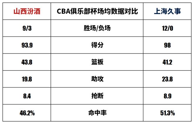 CBA俱乐部杯场均数据对比