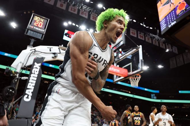 作为2022年选秀大会的9号秀,索汉本赛季已经跌出了马刺的轮换阵容,在上周的交易截止日前也被视为潜在的交易筹码。尽管他没有出现在马刺的任何一笔截止日交易中(马刺是联盟中三支没有在赛季中完成交易的球队之一),但他仍有机会在赛季结束前获得一个全新的开始。