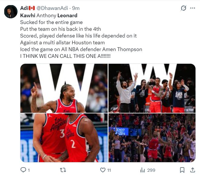 快船官方晒出了决胜一投的海报,末节伦纳德10中6狂砍19分5篮板2助攻2抢断,全场比赛33分钟,20中9,三分5中1,罚球8中8,拿到27分12篮板4助攻4抢断4失误, 命中率45%,三分命中率20%,