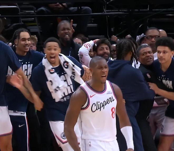 小卡命中这个准绝杀的2+1后快船替补席沸腾了,多人都捂头、跳跃、险些冲入场内,小卡实在是太神奇了,这就是战神卡的魅力吧。