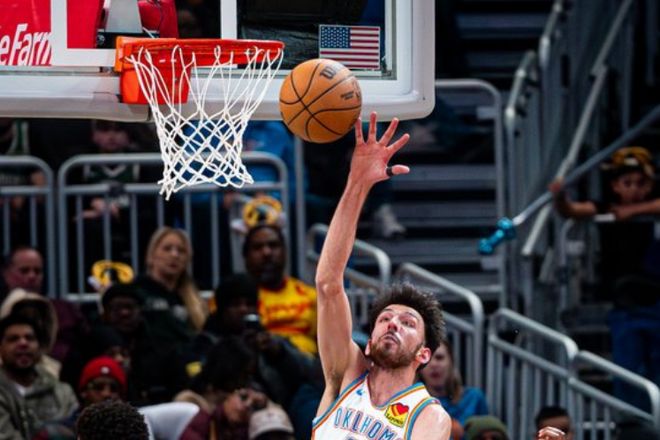 雷霆:霍姆格伦16分13篮板4助攻2盖帽,乔4记三分17分,多尔特9分,肯威9分8篮板,卡鲁索9分。