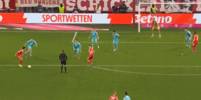 第45分钟,凯恩再次操刀破门,完成梅开二度好戏,拜仁再度领先,2-1!