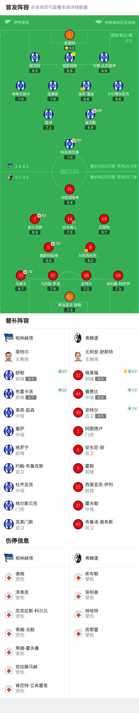 北京时间2月11日德国足协杯 1/4决赛,柏林赫塔对阵弗赖堡。弗赖堡铃木唯人破门。最终比分柏林赫塔 0-1 弗赖堡。
