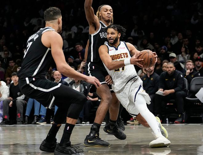 掘金客场挑战篮网,掘金方面戈登、布劳恩复出,约基奇、约翰逊、瓦兰缺阵,篮网方面克拉克斯顿缺阵,前三节比赛篮网每节都占据上风,三节战罢领先16分,第四节掘金追回4分,最终篮网以12分优势击败掘金。波特17中8得到27分11板5助,克洛尼10中6(三分6中4)得到22分6板2助,夏普9中6得到17分6板4助3断,掘金方面穆雷23中11得到27分6板16助,哈达威12中7(三分10中5)得到26分2板,戈登15中8得到20分6板2助。