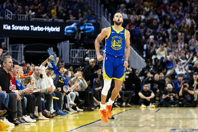 当库里进入状态时,对手不敢给他一丝一毫的出手空间,否则就会被迅速惩罚,因此库里排在榜首实至名归也并不让人意外。