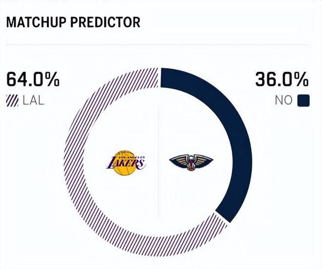 截止到目前,湖人以22胜11负的战绩,排名西部第五。作为对比,鹈鹕队目前仅以8胜29负的战绩,惨遭7连败,排名西部倒数第一。赛前,美媒ESPN对本场比赛进行了胜率预测,湖人胜率为64.0% ,占据优势,鹈鹕队胜率则仅有36.0%。