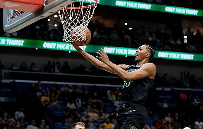 首节开打,詹姆斯、艾顿肆虐篮下连续双手暴扣,湖人开场就炸,开局4-0领先鹈鹕。费尔斯里突外投连拿5分,鹈鹕反超比分。詹姆斯顶开防守翻身后仰跳投命中后再中三分,开局4中3连拿7分,打停鹈鹕。琼斯强攻不中,锡安神兵天降腾空暴力完成补扣。东契奇灵巧背运过掉2人防守,直捣黄龙拉杆极限打进,范德比尔特抢断反击上篮得手,湖人领先到6分。东契奇干拔三分意外出现三不沾,目前三分4中0得到11分,米西篮下补篮得手,马特科维奇挡拆后顺下接阿尔瓦拉多秒传,完成空接暴扣,首节打完,鹈鹕25-29落后湖人。