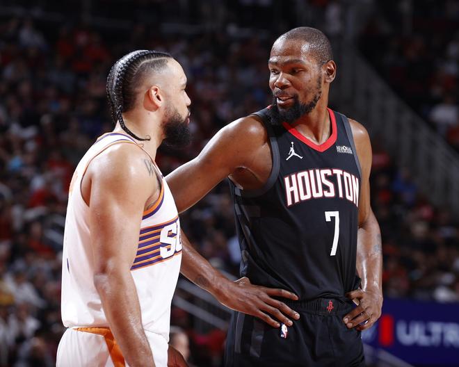 其中太阳队值得关注,清空未来筹码押宝比尔+布克+杜兰特三巨头失败后,陷入两难建队处境的太阳队却凭借一笔与火箭队围绕杜兰特展开的1换8廉价交易实现翻身。