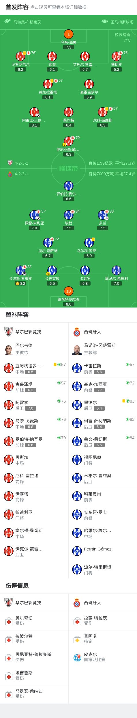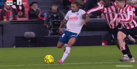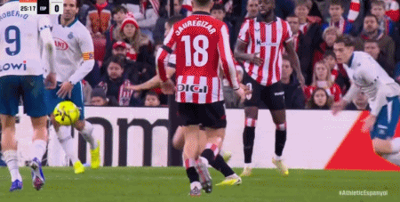 第38分钟,贝伦格尔门前捅射破门,毕尔巴鄂竞技1-0西班牙人