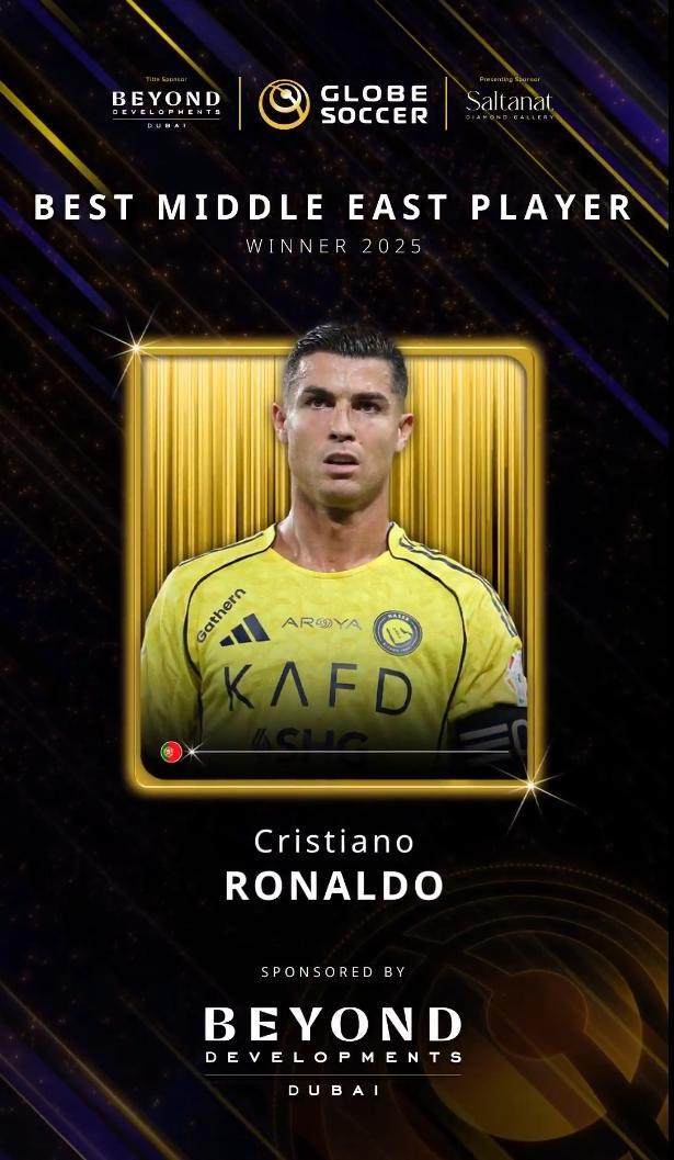 官方:C罗荣膺2025环足奖年度最佳中东球员