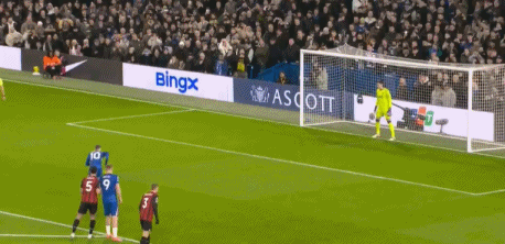 第10分钟,埃斯特旺突破禁区倒地,VAR判罚点球,帕尔默操刀命中,1-1!