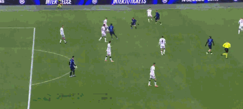 第19分钟,劳塔罗抢断后无私横传,黑格姆及时回防化解