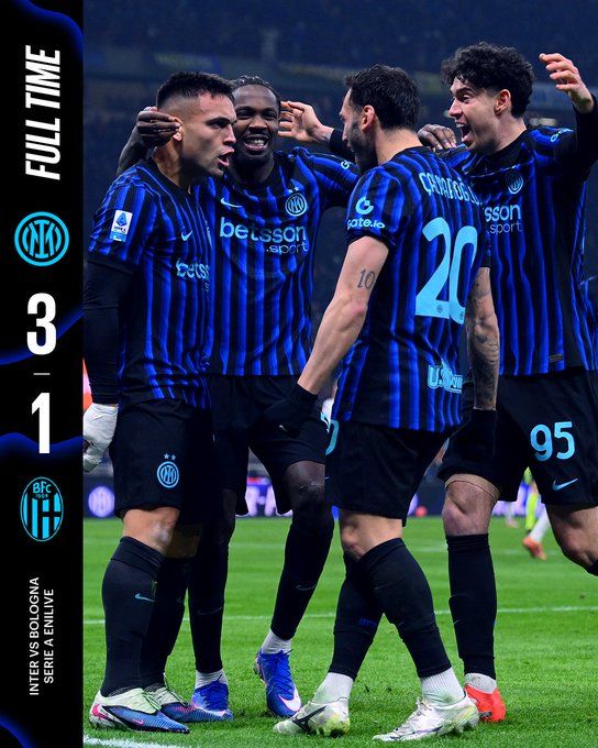 北京时间1月5日03:45,意甲联赛第18轮,国际米兰坐镇主场梅阿查球场迎战博洛尼亚。上半场,泽林斯基破门,劳塔罗、巴斯托尼造险。易边再战,劳塔罗建功+中框+失单刀,图拉姆再下一城,卡斯特罗扳回一球。最终国米3-1博洛尼亚。积分榜方面,国米39分以一分优势领跑,博洛尼亚26分第七。