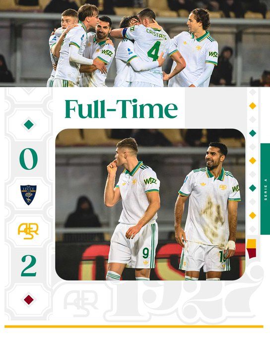 北京时间1月7日01:00,意甲联赛第19轮,罗马客场挑战莱切。上半场埃文·弗格森破门,罗马暂1-0莱切;下半场多夫比克建功,比赛尾声阶段伤退,最终罗马2-0战胜莱切,升至积分榜第五。