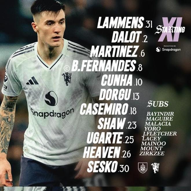 曼联客战伯恩利:谢什科、库尼亚首发,B费、卢克-肖出战