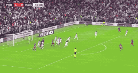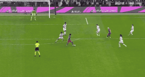 拉菲尼亚选择自己射门,琼阿梅尼防守不及,皮球打进远角,巴萨取得领先。