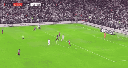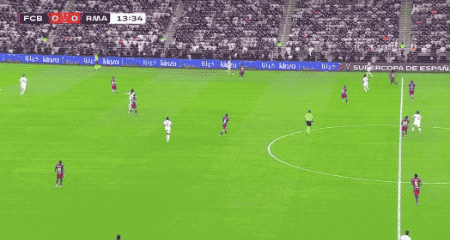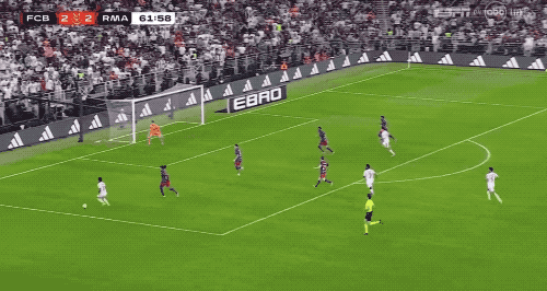 精彩的剧情在上半场的补时阶段上演。补时第2分钟,维尼修斯单枪匹马冲击巴萨防线,穿裆过掉孔德后,冷静破门。